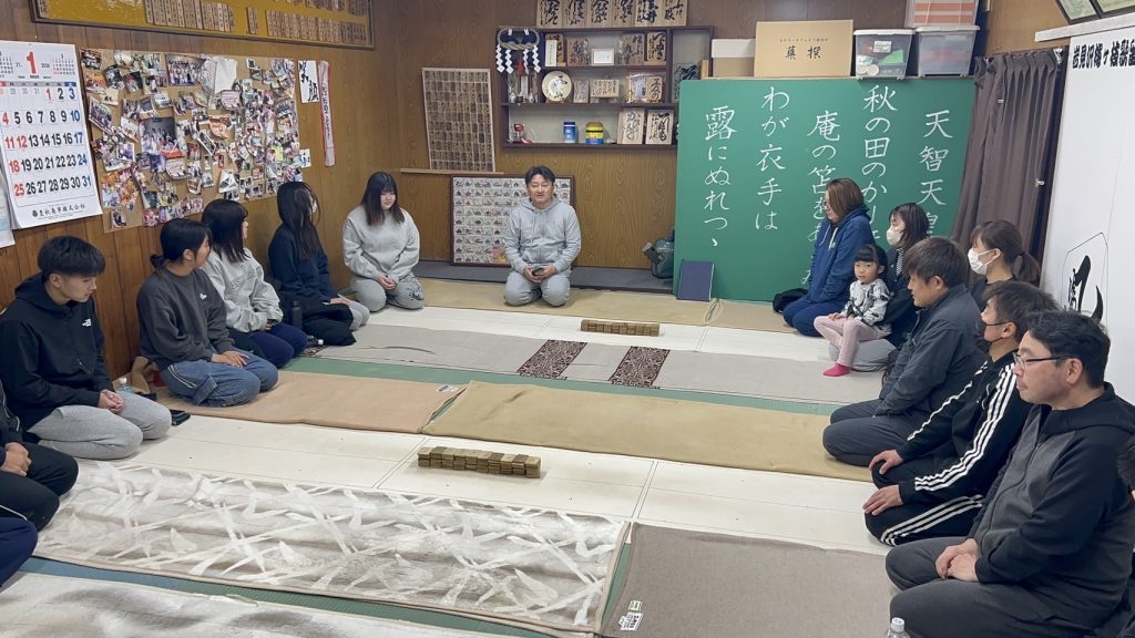 2026年1月7日 / 最終更新日時 : 2026年1月7日 umegae-carta ニュース 令和8年練習始め 令和8年1月6日(火)岩見沢梅ヶ枝歌留多俱楽部の新年初練習を行いました。部員一同道場の神棚にお参りし、和田梅ヶ枝歌留多倶楽部会長より新年のあいさつがありました。今年も各大会で好成績を残せるよう倶楽部員一同さらに精進しましょう! コメントを残す コメントをキャンセルメールアドレスが公開されることはありません。 ※ が付いている欄は必須項目ですコメント ※ 名前 ※ メール ※ サイト 次回のコメントで使用するためブラウザーに自分の名前、メールアドレス、サイトを保存する。