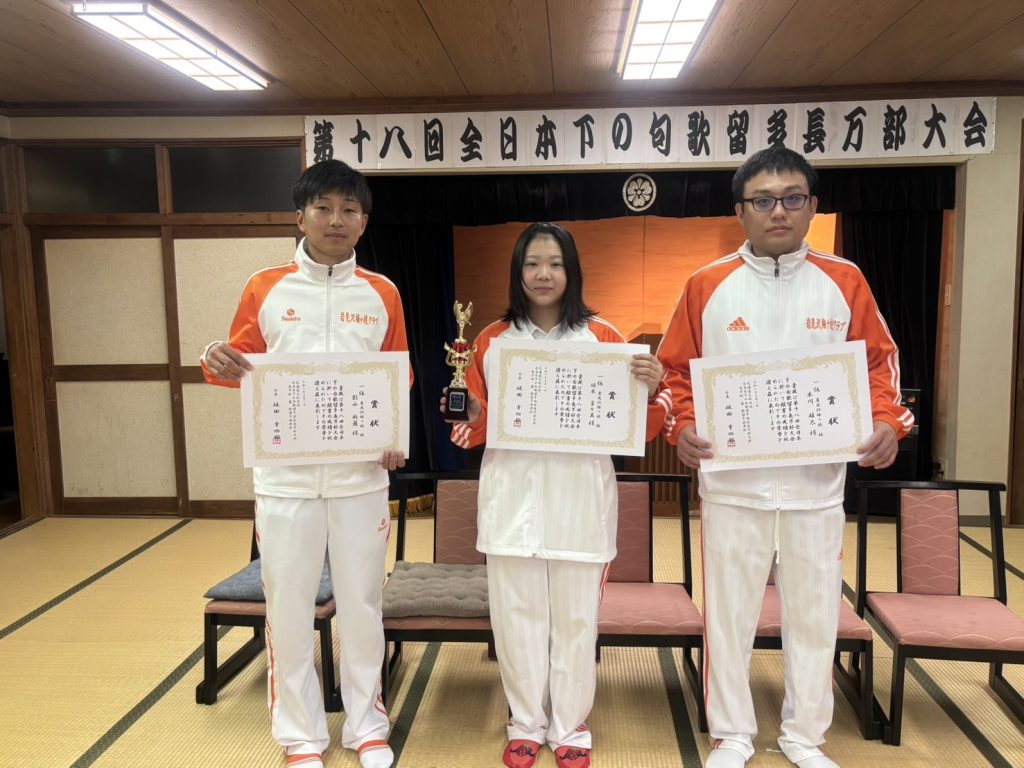 梅ヶ枝倶楽部は「梅ヶ枝の枝(木川(雄)・堰本(菜)・影山(新)」が見事3位入賞となりました。